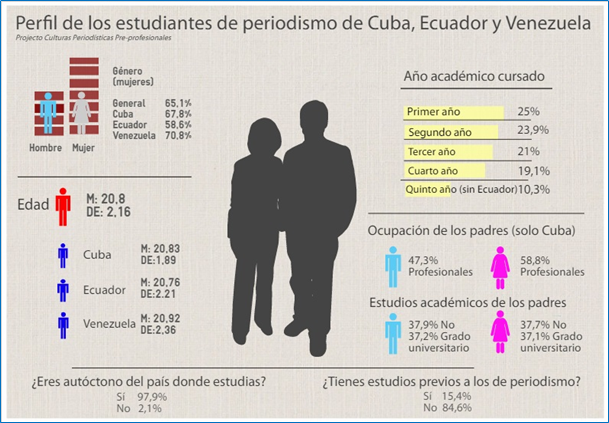 En lo que se refiere al perfil psico/sociográfico de los estudiantes de periodismo de Cuba, Ecuador y Venezuela: