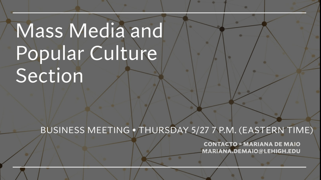 Jueves a las 7PM (Eastern Time) 1AM (Madrid) se celebrará la reunión de nuestro grupo en LASA, liderado por al doctora Mariana De Maio.