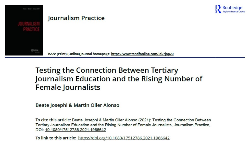 Beate Josephy and I are very happy to announce the publication of «Testing the Connection Between Tertiary Journalism Education and the Rising Number of Female Journalists» in the prestigious journal Journalism Practice.