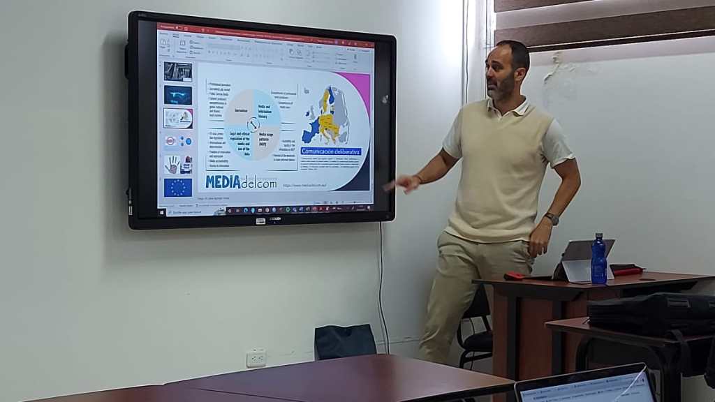 En el segundo curso «Aprender a investigar en Comunicación. Nuevas tendencias y desafíos de la formación profesional», dirigido a estudiantes de octavo y noveno semestre de la carrera de Comunicación Social, trabajamos a través del modelo de aprendizaje «learning by doing» acerca de los procesos de investigación en Ecuador y a nivel internacional.