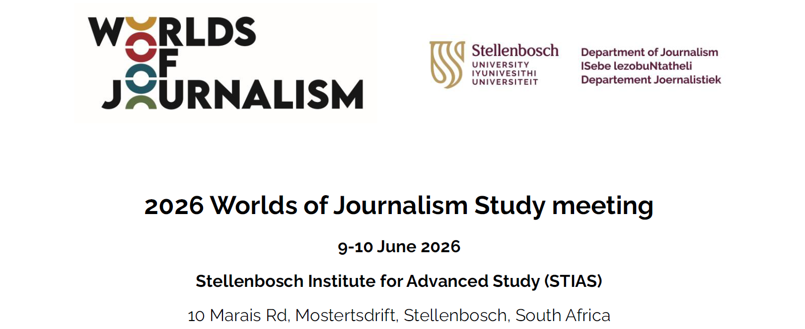La Universidad de Salamanca estará presente en la reunión internacional Worlds of Journalism Study (WJS) 2026, que se celebrará los días 9 y 10 de junio de 2026 en el Stellenbosch Institute for Advanced Study (STIAS), en Stellenbosch (Sudáfrica). El encuentro reunirá a investigadores e investigadoras de distintos países para debatir los resultados de la tercera ola del proyecto, discutir el diseño de WJS4 y presentar investigaciones en curso en el marco de una de las redes académicas más relevantes del mundo en el estudio comparado del periodismo.